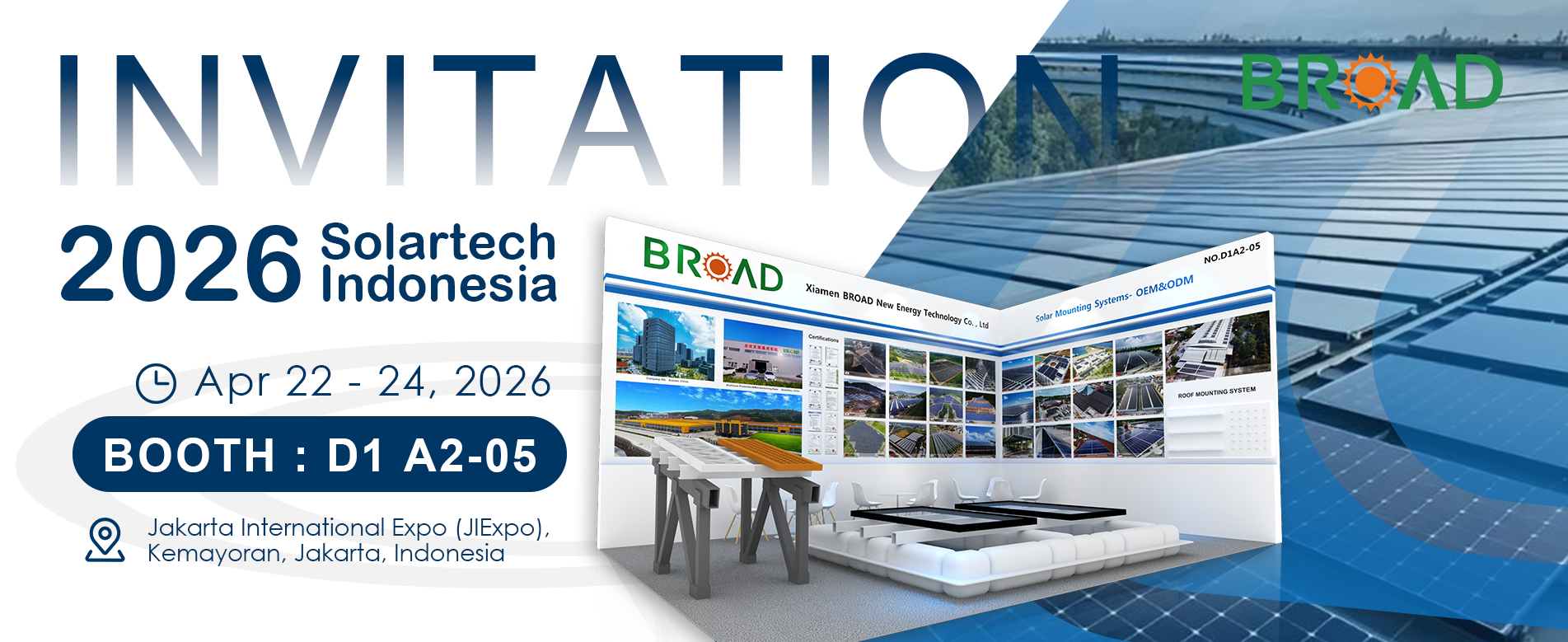 Como fornecedora líder de sistemas de montagem solar, a ampla sempre desempenha um papel ativo na indústria de energia solar fotovoltaica. Ao participar de exposições de energia solar em todo o mundo, a ampla pode apresentar melhor nossos sistemas de montagem solar.